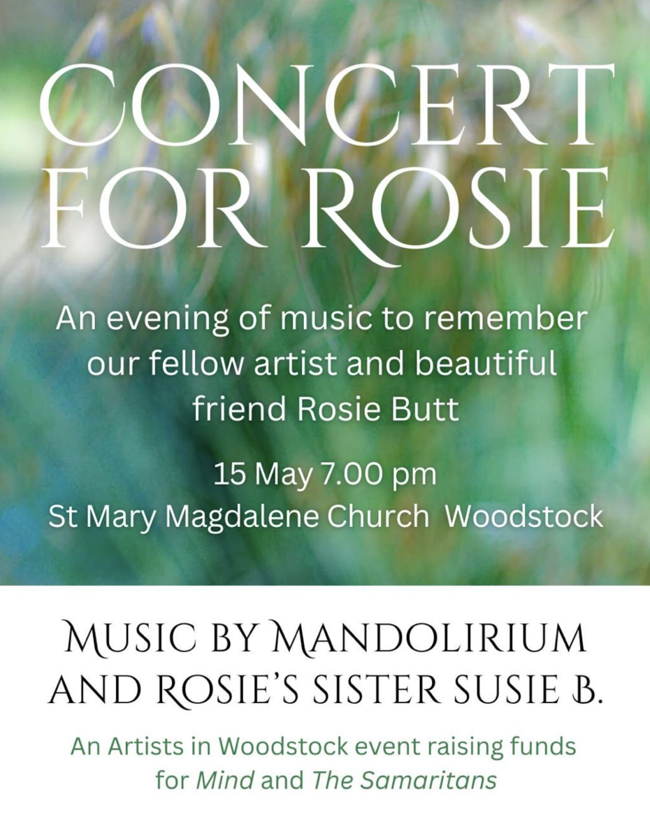 Artists in Woodstock welcome you to an evening of Music to remember their fellow artist and beautiful friend Rosie Butt.