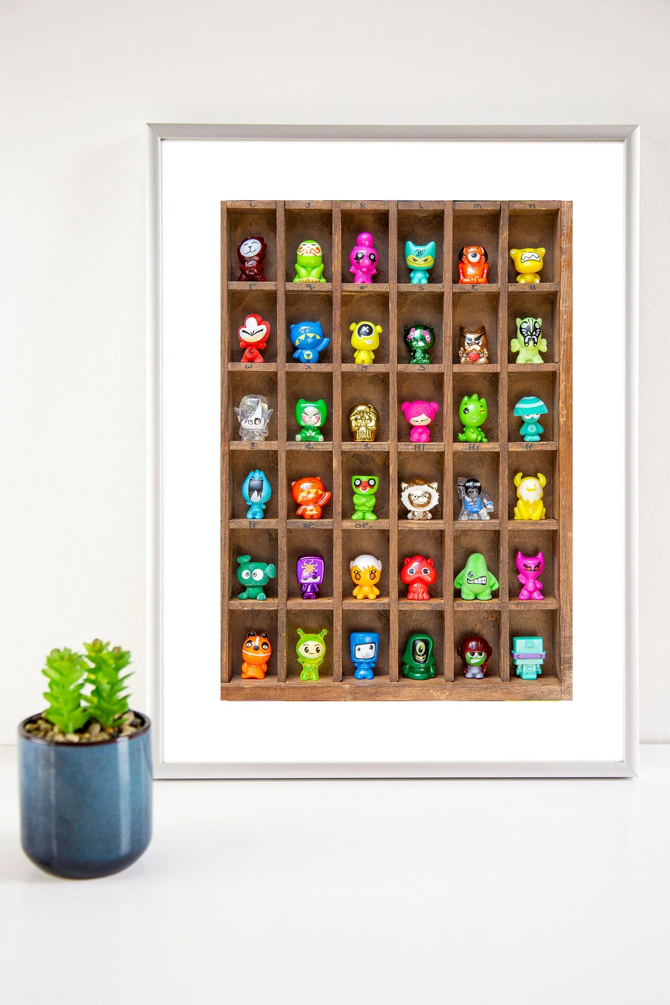 Jane’s images continue the “Collections” theme, in which the visual repetition of small, neatly arranged objects within a type box continues to fascinate Jane, representing bringing order to the chaos and when we are used to seeing Lego mini figure strewn across the floor with no heads and partially complete, the lined up, ordered Legomen allow the viewer to really see the beauty in each object and the satisfying order, brings peace and serenity.