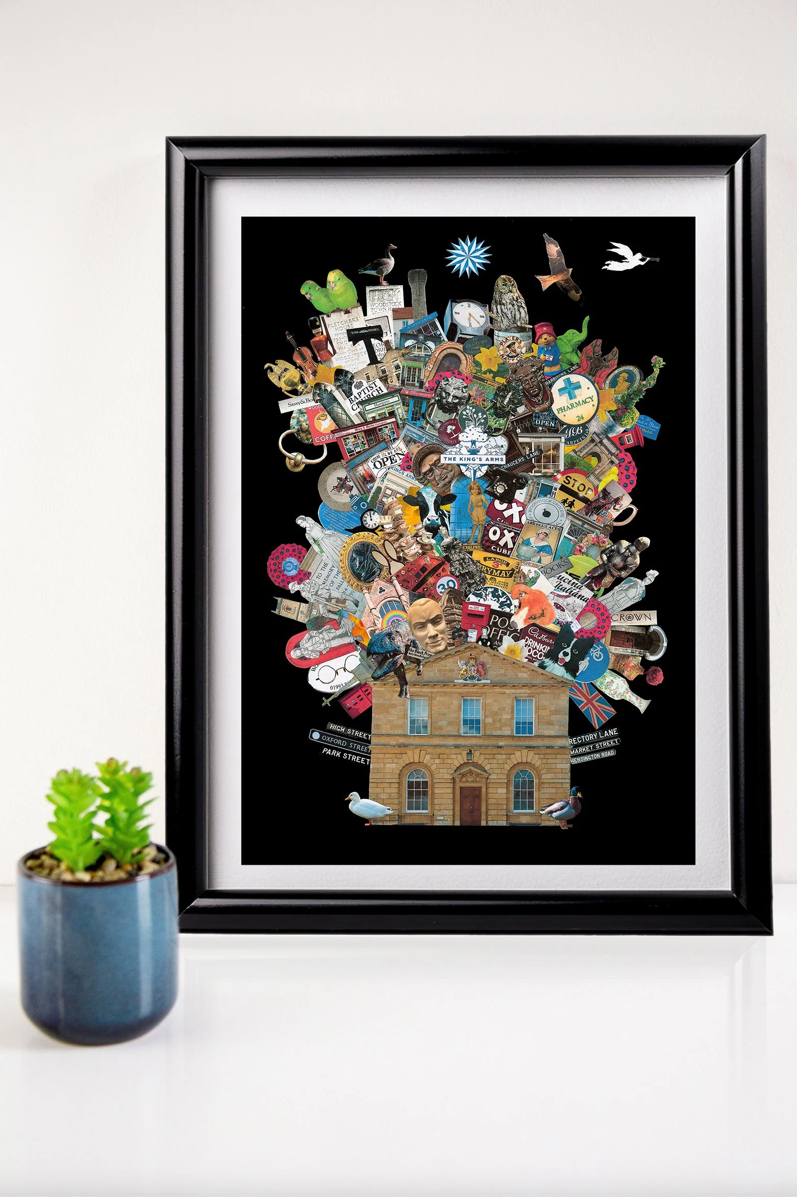 Jane has created new collage images on the theme “Collections”, Winston’s World, Wonders of Woodstock, Vase of Versailles, Marvel of St Mary’s and now a new one called the Radiance of Radcliffe. These artworks are new ideas based on a collection of items discovered on multiple trips noticing the recognisable and sometimes the unusual details of a place or building, to create detailed and eye-catching artworks.