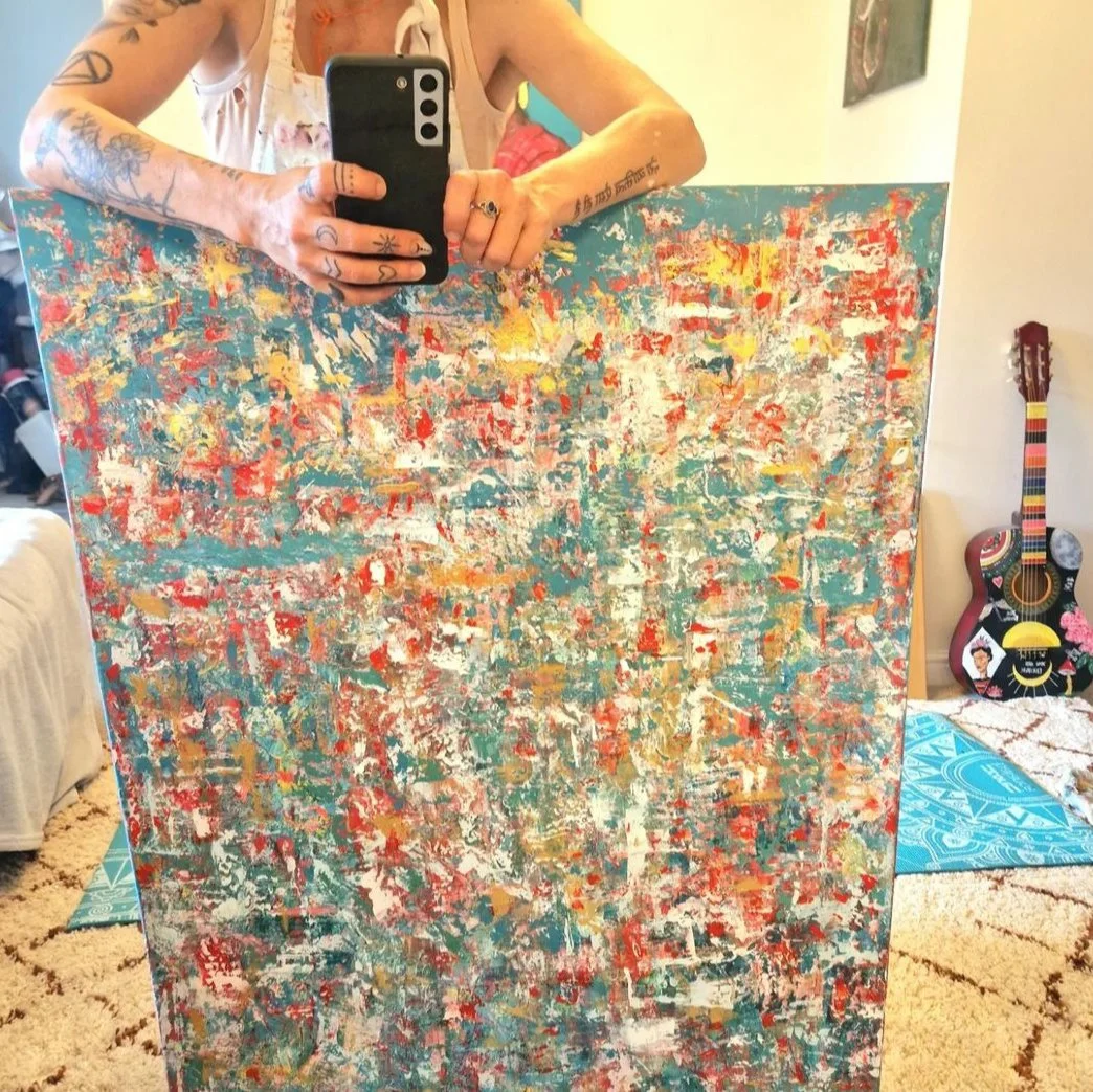 She loves the emotion of painting, the way that it helps her switch of from what she describes as the millions thoughts in her head. “It helps me express the chaos inside. The ideas or emotions. Painting releases that, I can put it on the canvas and show it to the world.”
